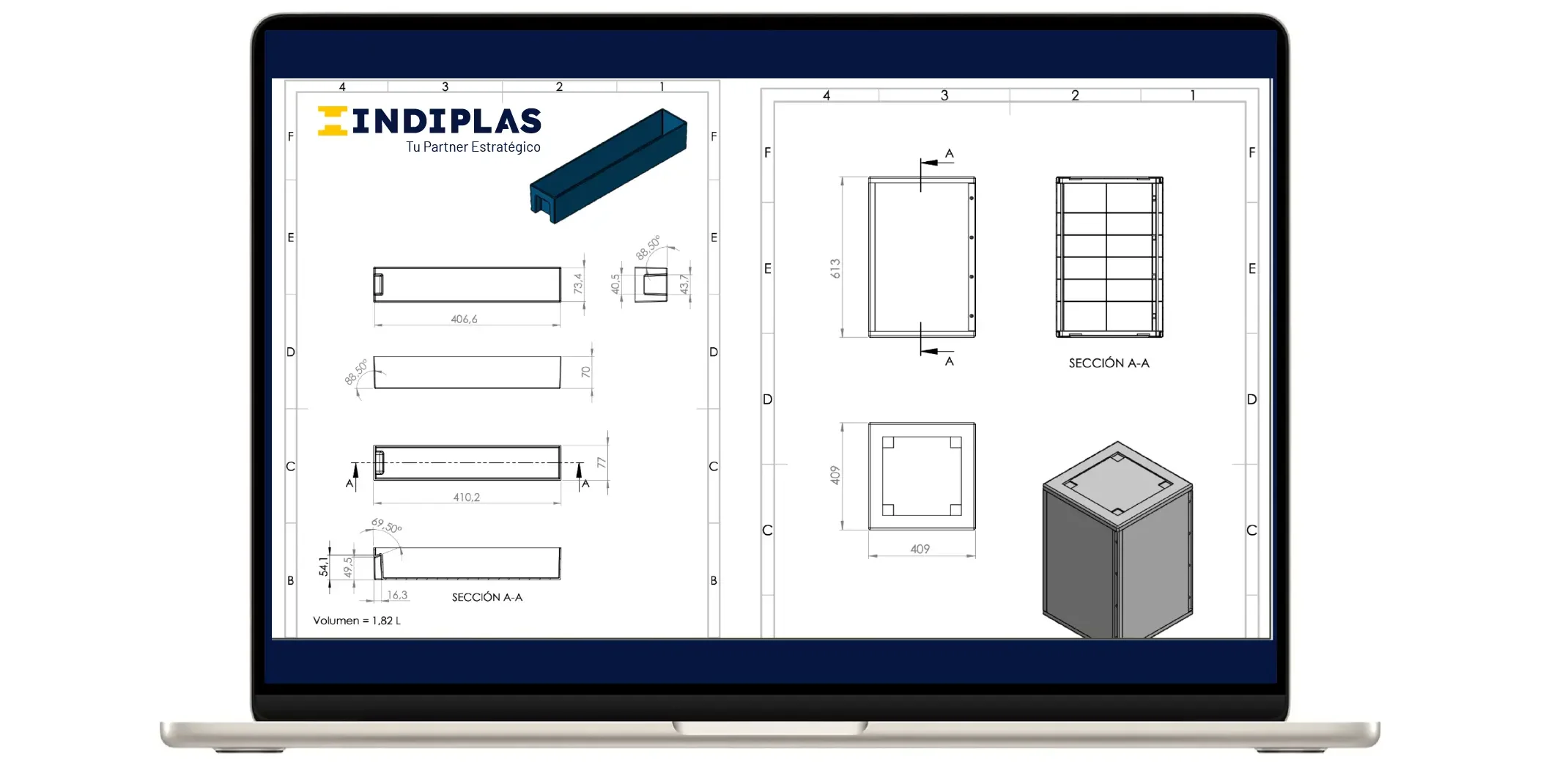 Nuestro equipo de ingenieros y diseñadores comienza a trabajar en el diseño técnico de la pieza, adaptando las especificaciones a tus necesidades.